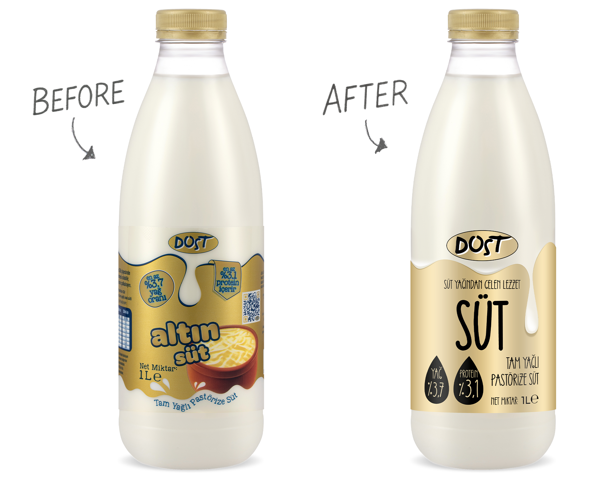 In the redesign of Dost Milk packaging, our primary goal was to preserve the familiar elements that consumers recognize on the shelf while giving the brand a more modern and powerful look.